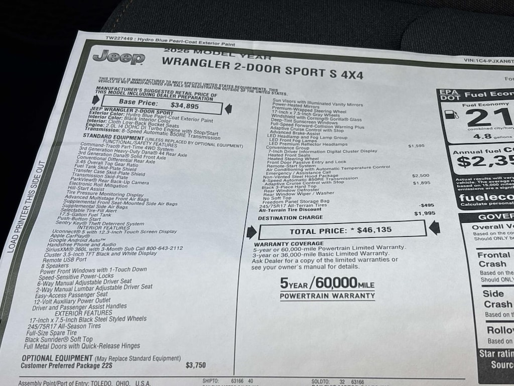 2026 Jeep Wrangler 2-DOOR SPORT S