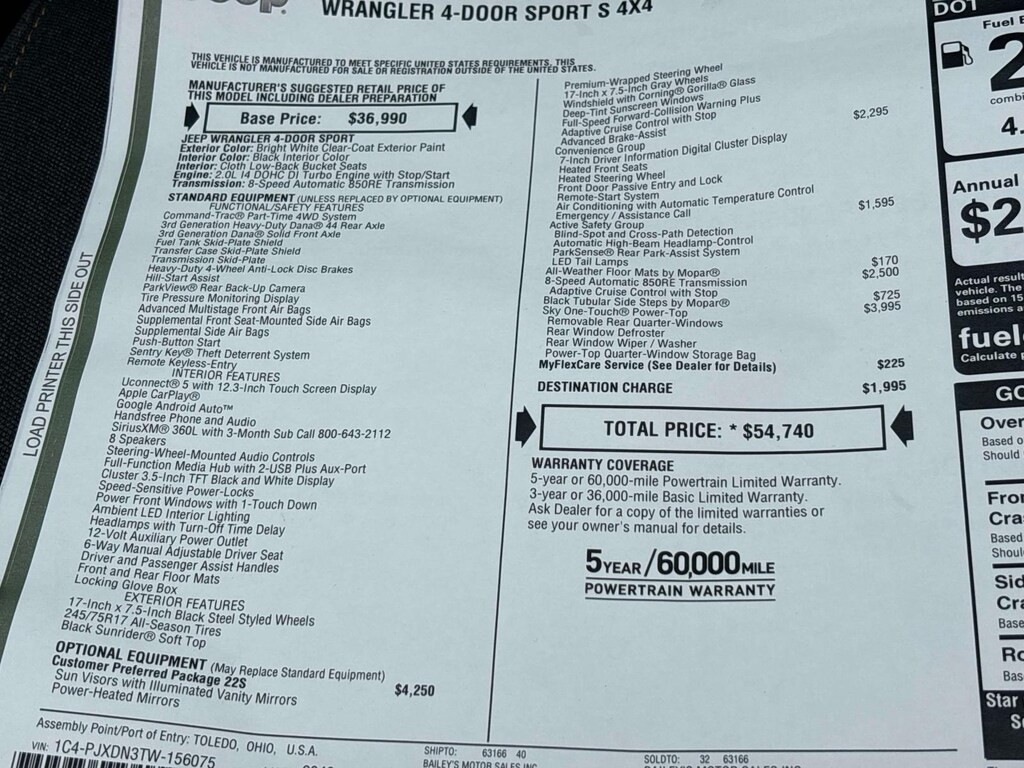 Vin Number: 1C4PJXDN3TW156075