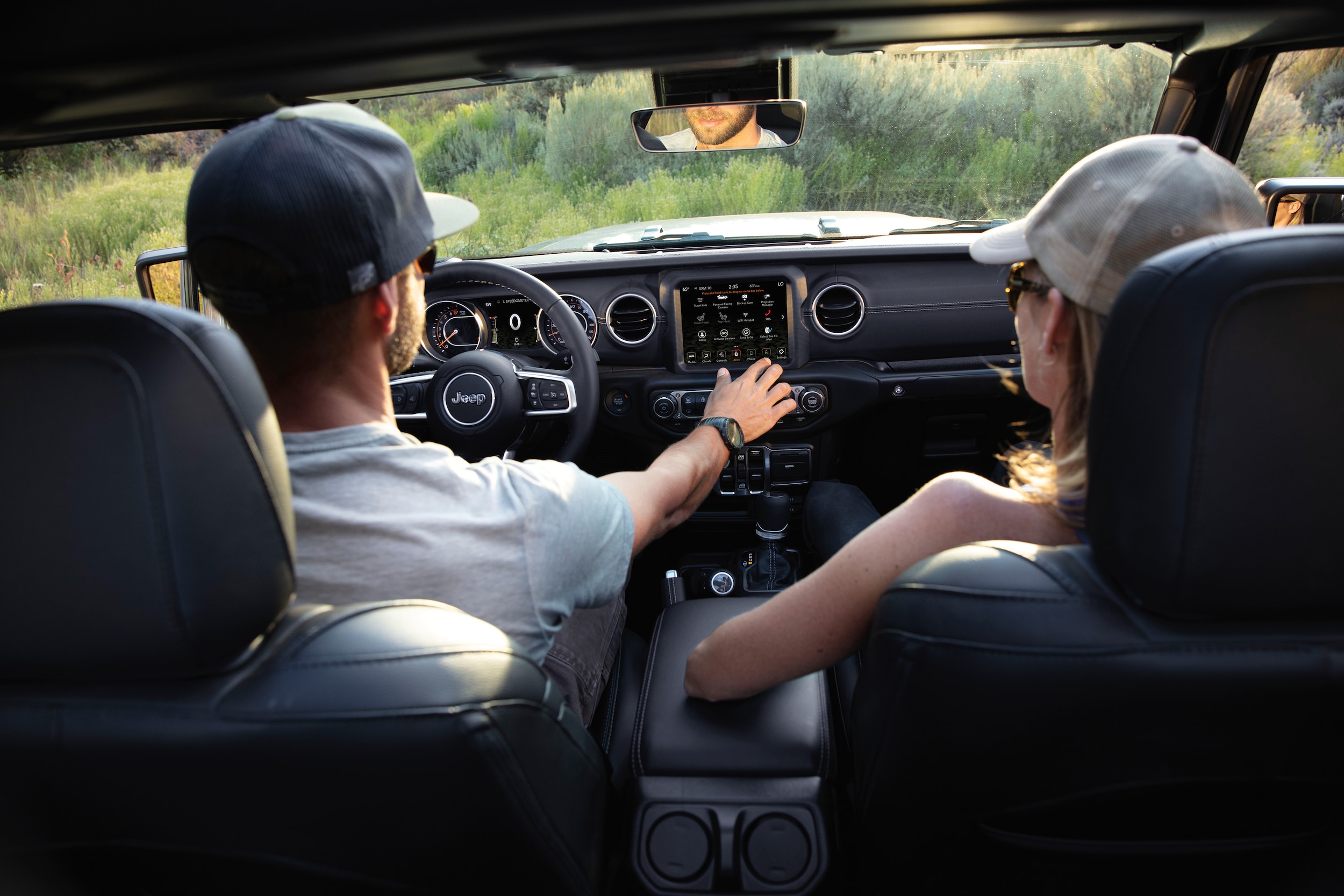 The main cabin of the Jeep Wrangler is outfitted with an impressive array of standard tech equipment. The base model offers a seven-inch touchscreen infotainment display with Apple CarPlay and Android Auto capability. The nine-speaker Alpine audio system provides immersive listening day in and day out. Ascending trim levels, drivers can enjoy a larger 8.4-inch touchscreen with built-in navigation capability. The top-of-the-line High Altitude trim level offers an expanded array of safety features like blind-spot warnings and parking sensors, helping you squeeze into tricky parking spaces or change lanes without strain.